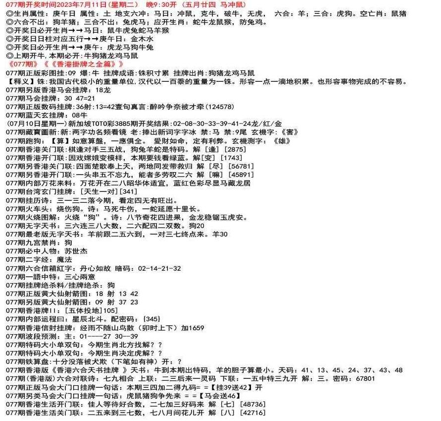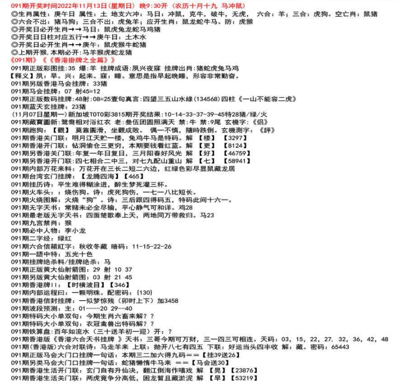 111期开奖时间2022年12月29日(星期四) 晚9:30开 (腊月初七 龙冲狗)