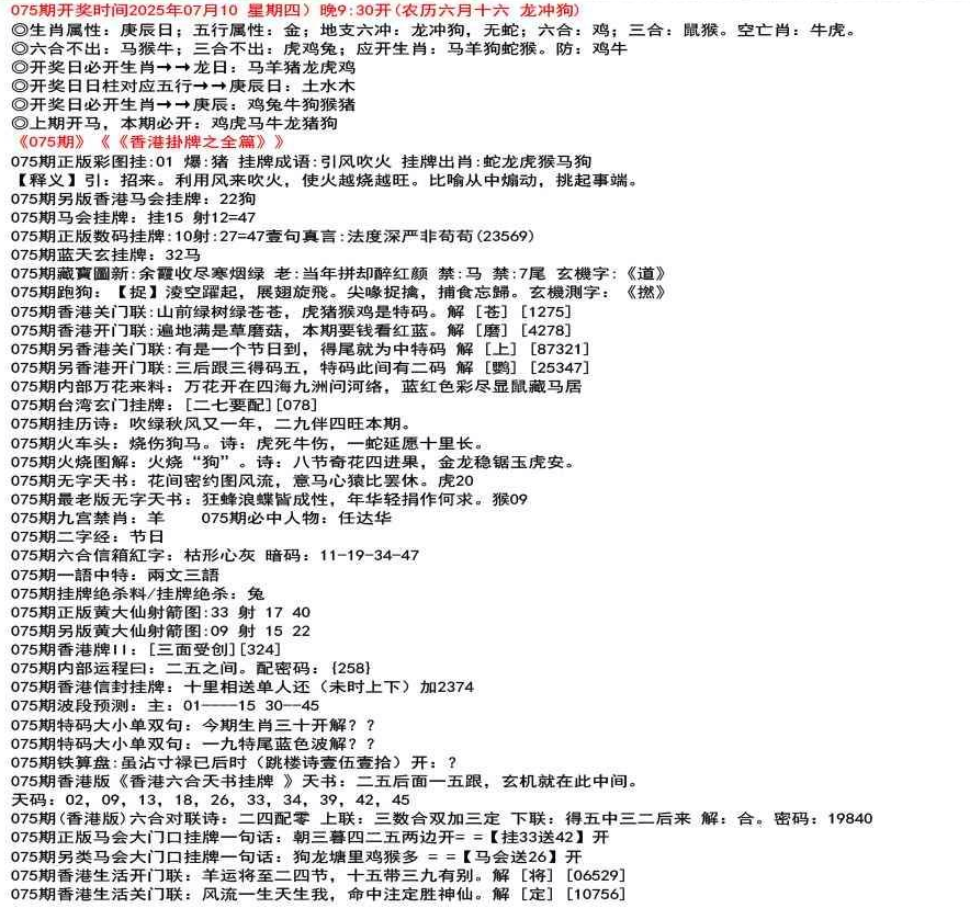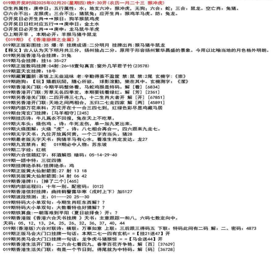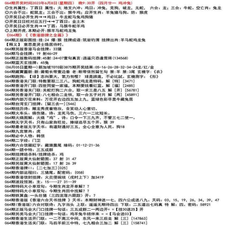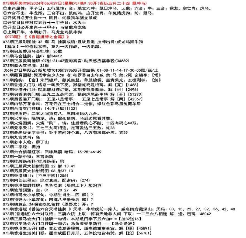 111期(香港版)六合对联诗:三三足养 上联:头在天上脚落地 下联:说是龙来假一字 解:落。密码:38729