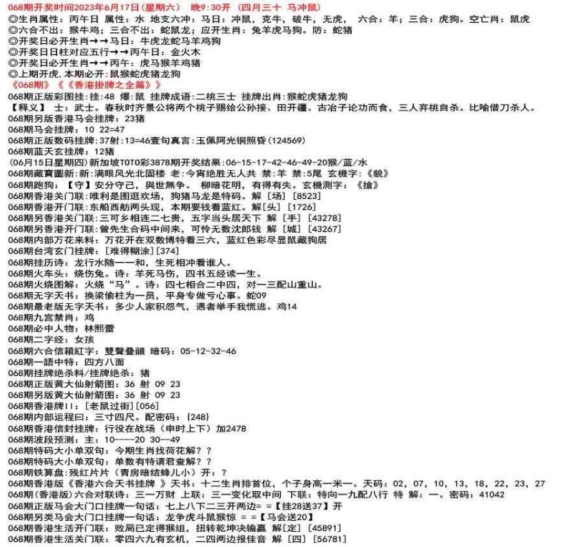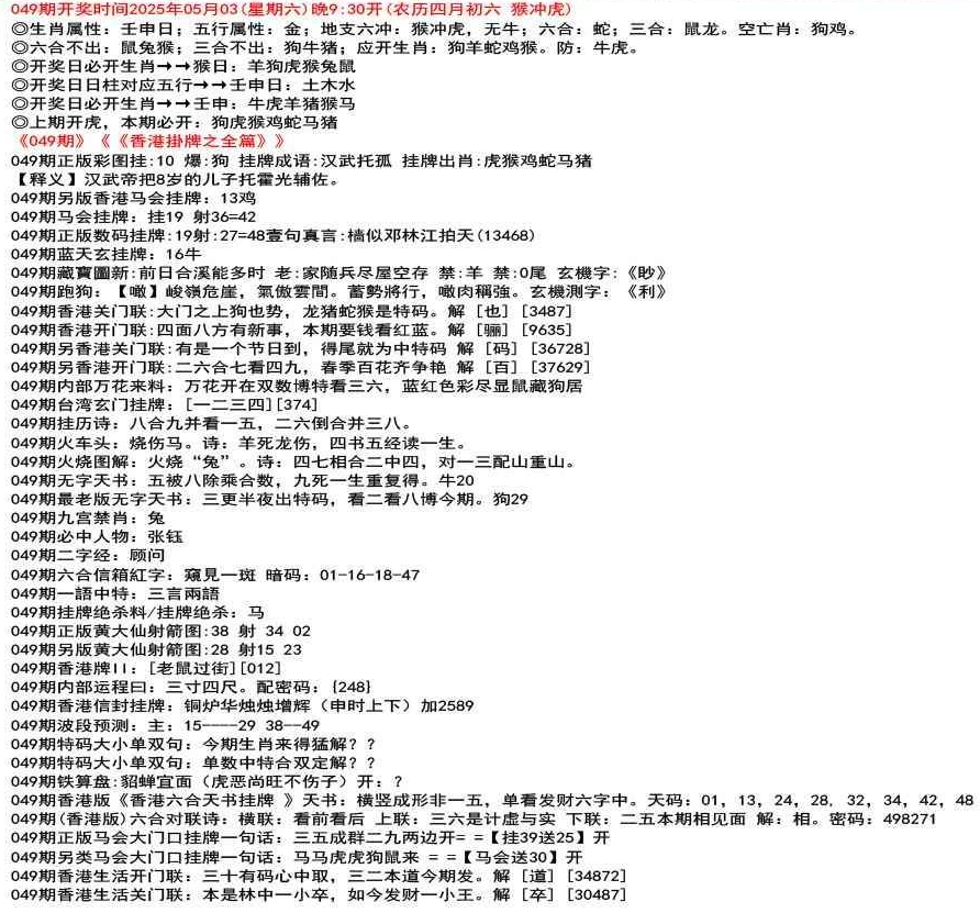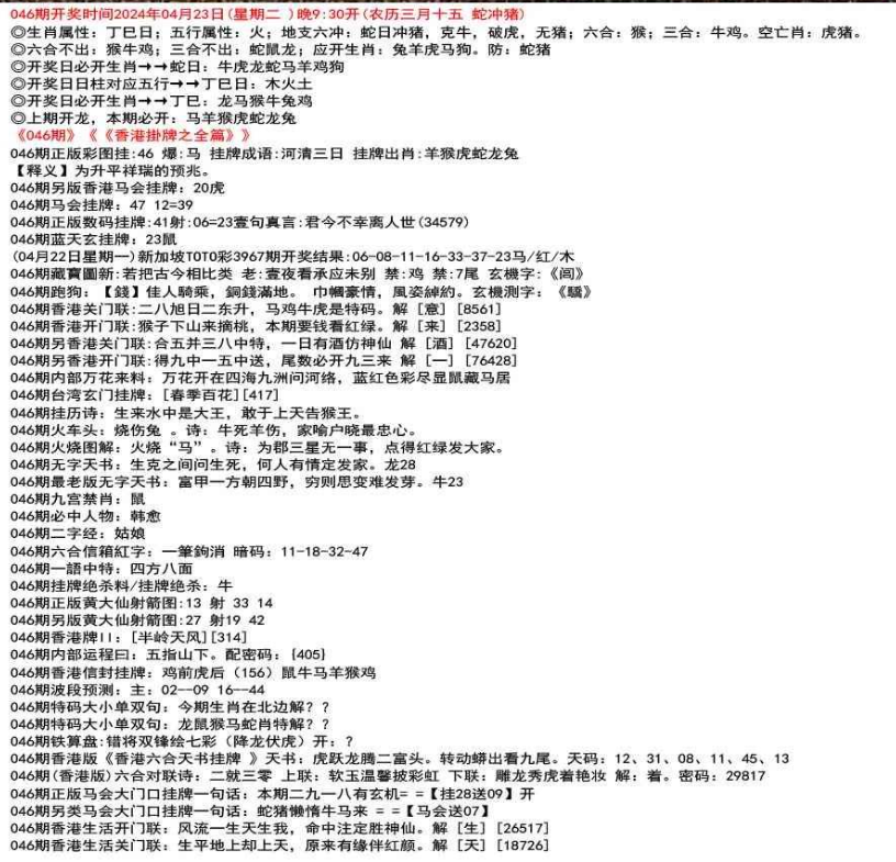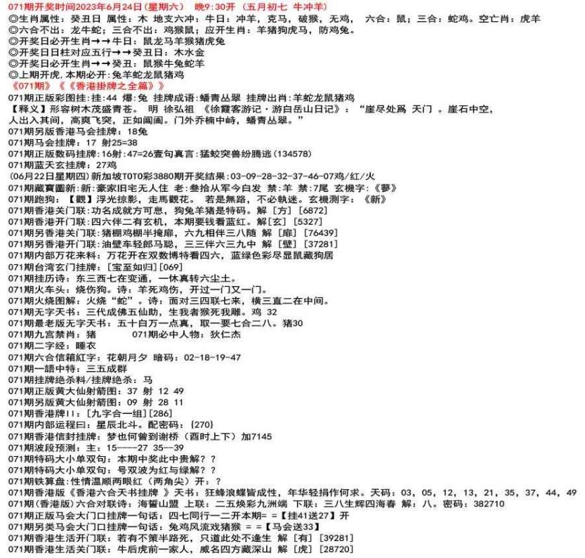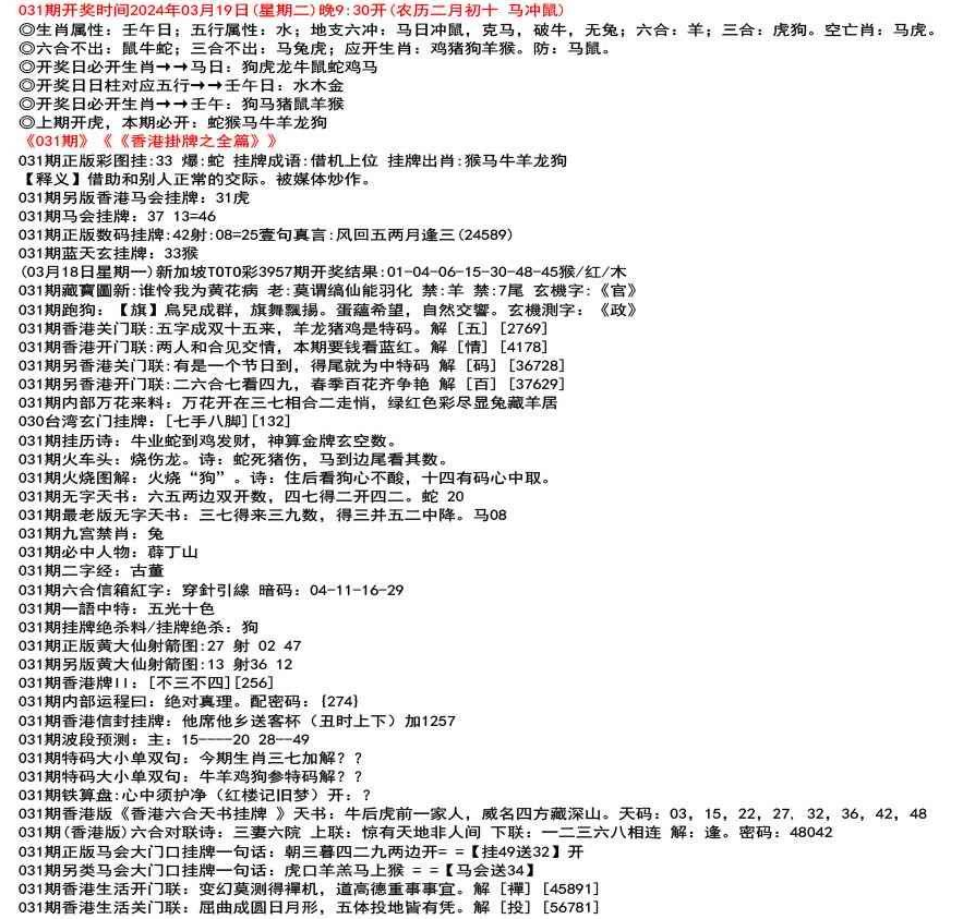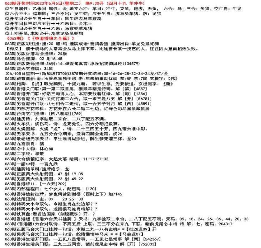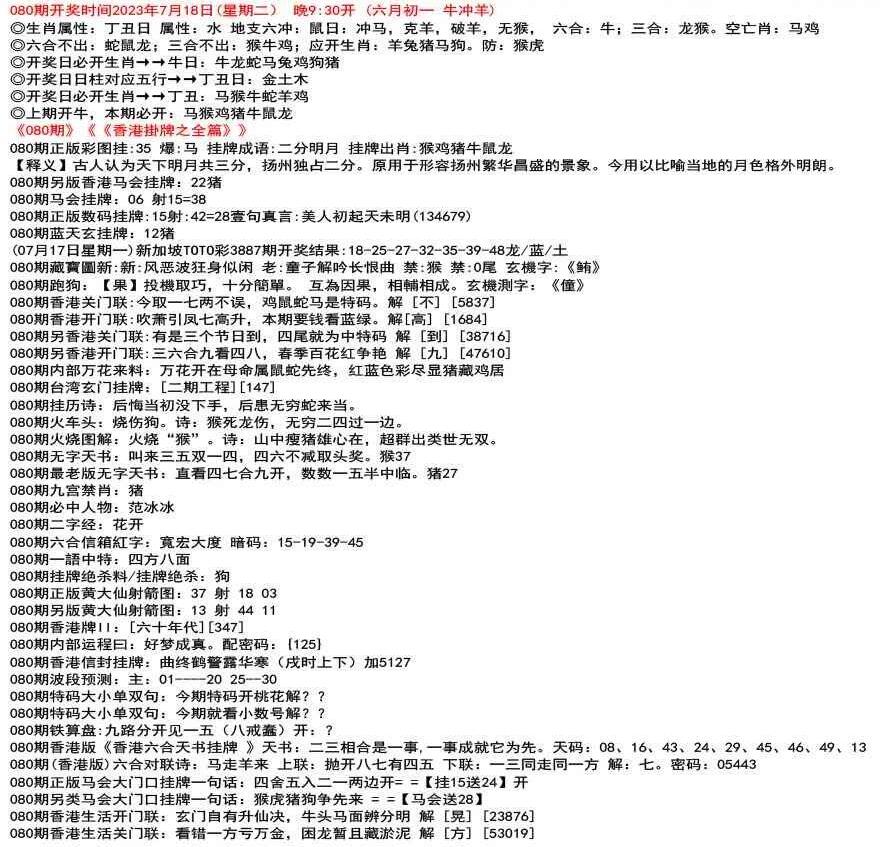 ◎六合不出:牛龙猴;三合不出:鼠蛇鸡;应开动物:羊兔猪虎狗。防:鼠马