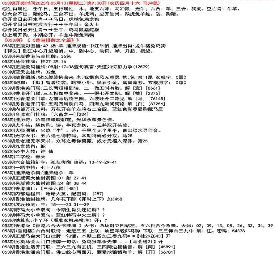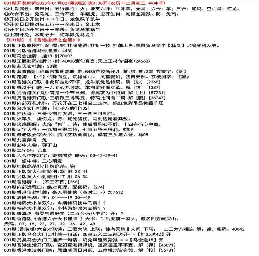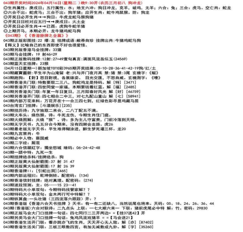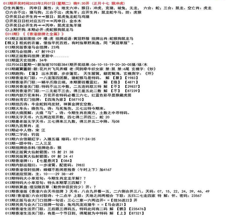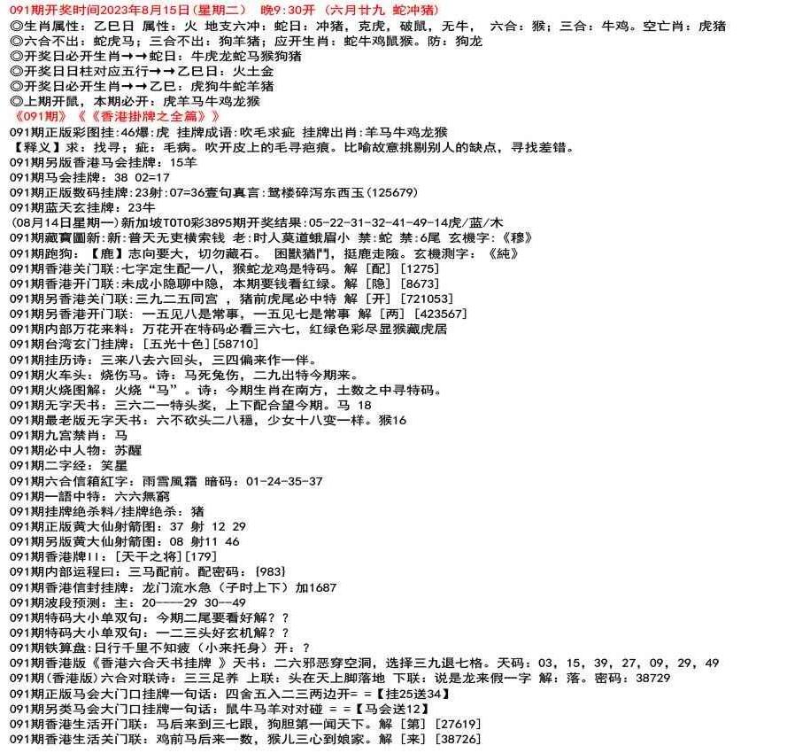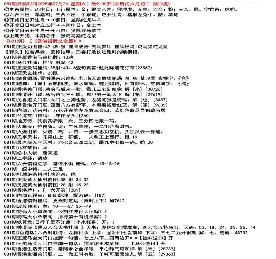 ◎六合不出:牛龙猴;三合不出:鼠蛇鸡;应开动物:羊兔猪虎狗。防:鼠马